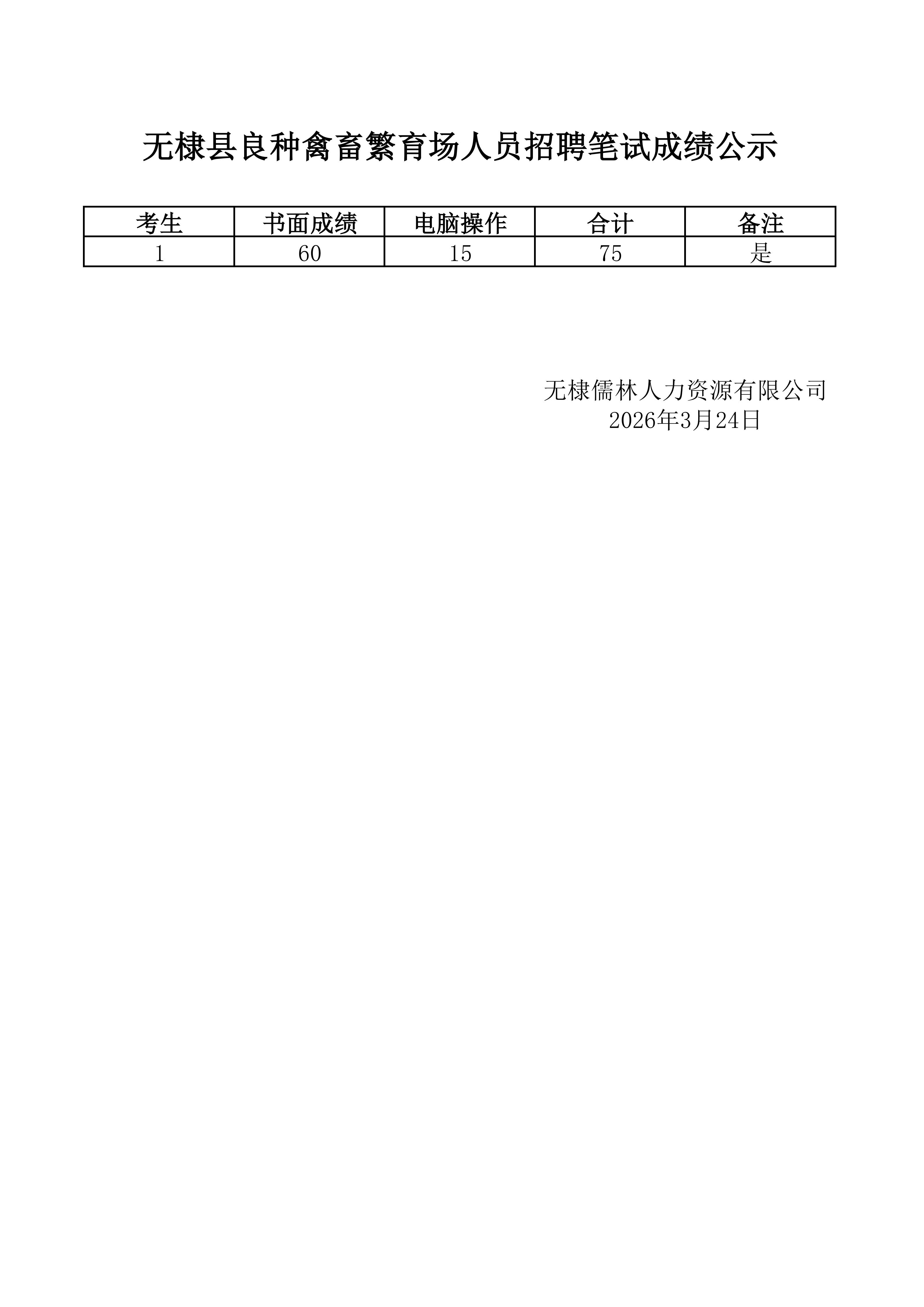 无棣县良种禽畜繁育场人员招聘笔试成绩公示
